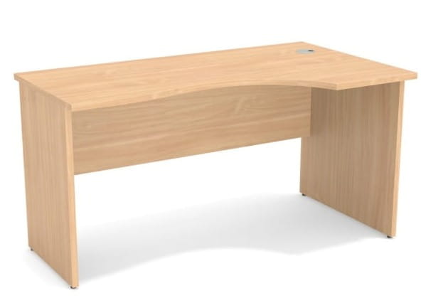 Profilowanie blatu zapewnia wygodę i ergonomiczny dostęp do przestrzeni roboczej, a dzięki kompaktowej formie biurko zmieści się nawet w mniejszych wnętrzach. W standardzie wyposażone jest w 1 przelotkę kablową, co ułatwia organizację przewodów i utrzymanie porządku.
