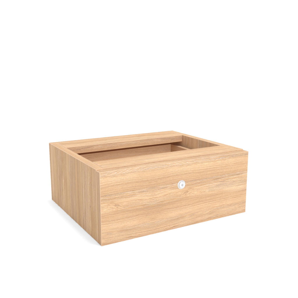 Szuflada SKY-6 idealnie sprawdza się w nowoczesnych biurach oraz w przestrzeniach typu home office. Jej minimalna wysokość pozwala na pełne wykorzystanie regulacji elektrycznego biurka, a jednocześnie zapewnia wygodne miejsce na najpotrzebniejsze akcesoria. Dzięki zamkowi można bezpiecznie przechowywać ważne dokumenty, klucze, portfel czy telefon.