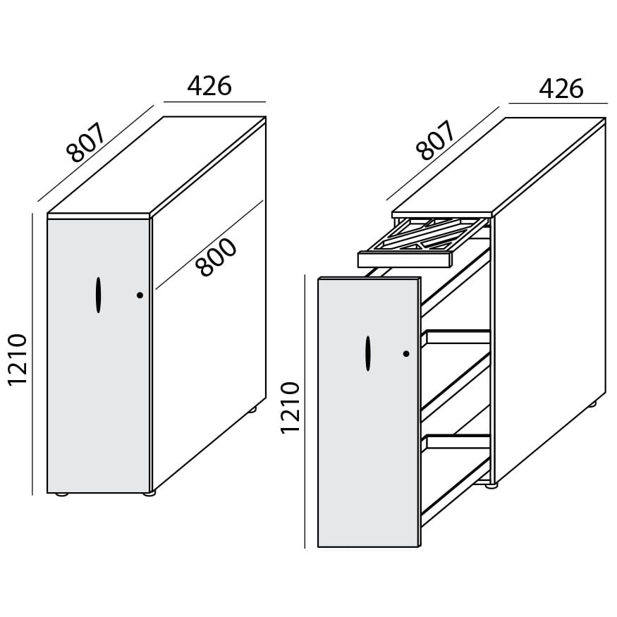 Wykonany z płyty dwustronnie melaminowanej wysokiej jakości, dostępnej w szerokiej gamie kolorystycznej. Szafka posiada ścianę tylną z płyty o grubości 18 mm.