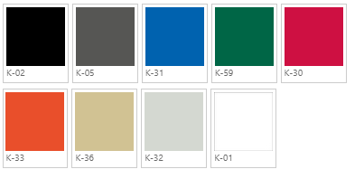 Wybierz RAL 9005 Jet black CZ, BL, Y, BK RAL 9006 White aluminium AL, ALU, WA, X, WK RAL 5000 Violet Blue VB RAL 6003 Olive Green OG NCS S 2005-Y60R Cashmere NK RAL 1024 Ochre Yellow OY RAL 030 50 40 Vermilion Red VR