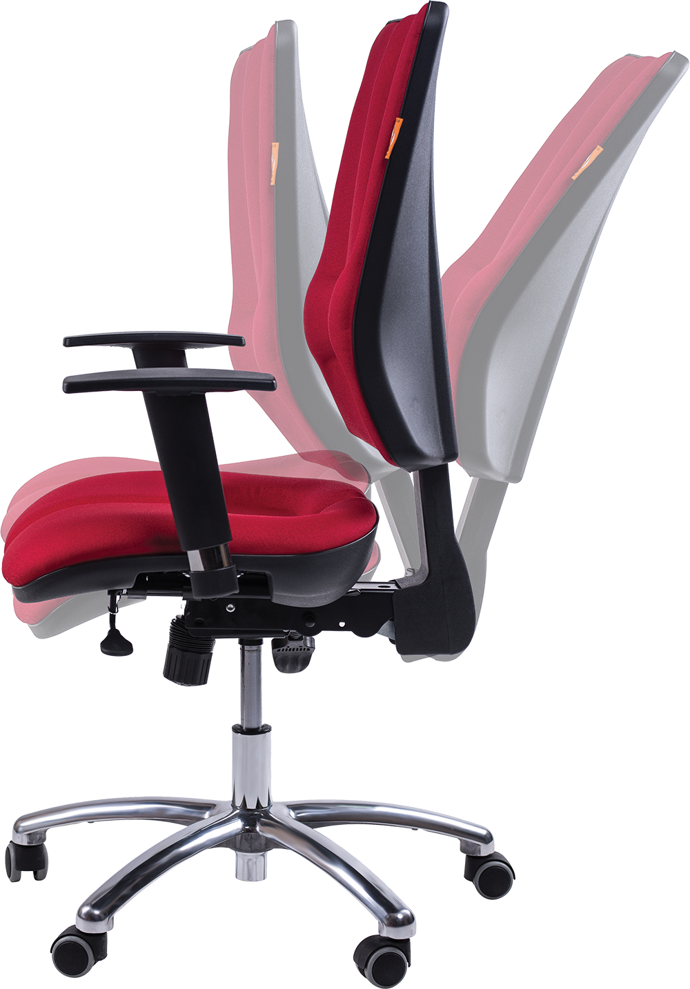 Posiada jednoczesną regulację pochylenia oparcia i siedziska jedną dzwignią (regulacja synchroniczna, oparcie i siedzisko są regulowane zależnie),