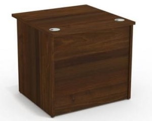 Blat o grubości 25 mm, wykonany z trójwarstwowej płyty wiórowej melaminowanej, wyposażony jest w dwie metalowe przelotki Ø80 mm w kolorze srebrnym. Umożliwiają one estetyczne prowadzenie przewodów komputera, telefonu i urządzeń biurowych, zapewniając porządek na stanowisku pracy.