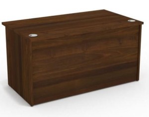 Blat wykonany z trójwarstwowej płyty wiórowej melaminowanej o grubości 25 mm został wyposażony w dwie metalowe przelotki Ø80 mm w eleganckim kolorze srebrnym. Ułatwiają one prowadzenie przewodów komputerowych, telefonicznych i urządzeń biurowych, pozwalając na utrzymanie porządku na stanowisku.