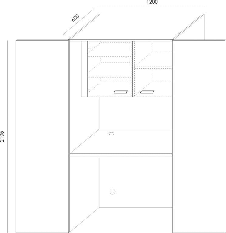 Aneks kuchenny SVK-500 o wymiarach zewnętrznych: szerokość: 120cm, głębokość: 60cm, wysokość: 219,5cm.
