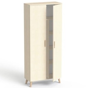 Klasyczna wysoka szafa ubraniowa firmy Sove. Wykonana z wysokiej jakości płyty melaminowanej, która umożliwia szybkie i dokładne czyszczenie. Posiada trzy przestrzenie, górną wąską, przestrzeń z wysuwanym uchwytem na wieszaki oraz część z półkami. Drzwi skrzydłowe. Doskonała do wyposażenia biur, gabinetów i pomieszczeń reprezentacyjnych.