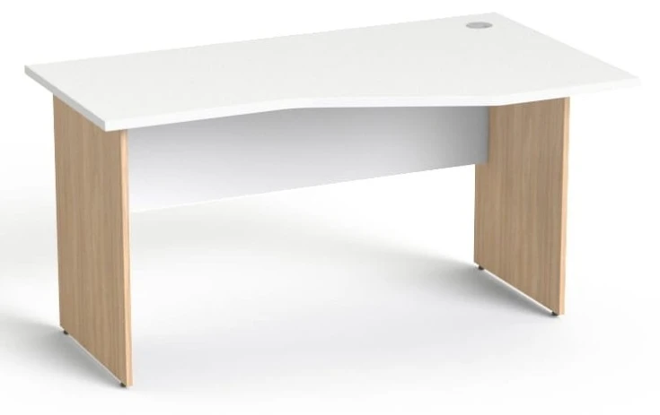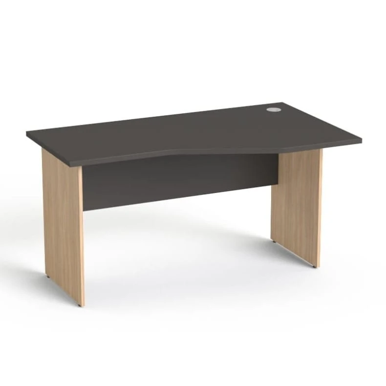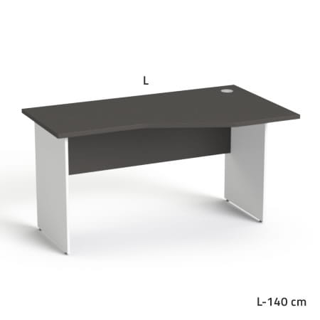 Biurko SV-21 Sove to nowoczesne biurko biurowe z ergonomicznym blatem profilowanym, zaprojektowane z myślą o wygodnej pracy przy komputerze. Układ prawostronny (szerszy blat po prawej stronie) ułatwia organizację stanowiska pracy.