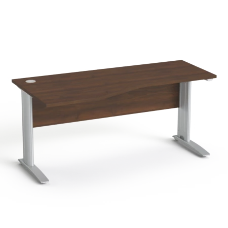 Biurko wyposażone jest w przelotkę kablową w blacie oraz pionowy kanał kablowy zintegrowany z nogą, co pozwala utrzymać porządek na stanowisku pracy i poprawia estetykę przestrzeni.